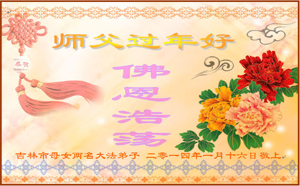 吉林市一家三口大法弟子恭祝師尊過年好!