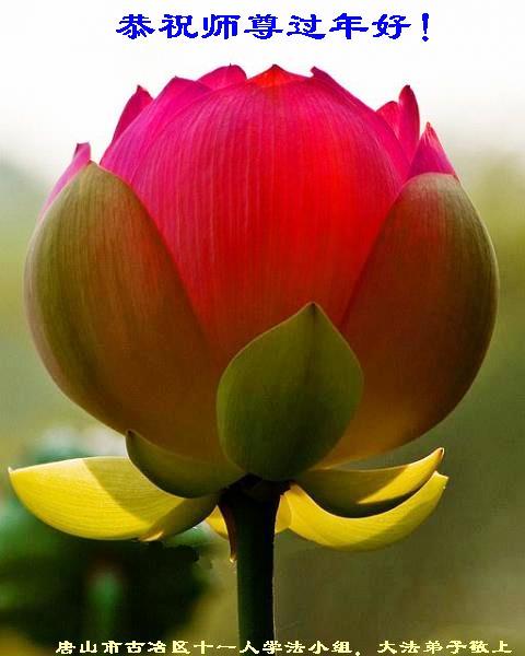 全體唐山市豐南區大法弟子祝願慈悲偉大的師尊新年快樂!在新的一年裏我們會努力配合好,形成強大的整體,緊跟師尊正法進程,做好三件事,救度更多眾生,兌現史前誓約,圓滿跟師尊回家。