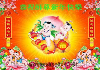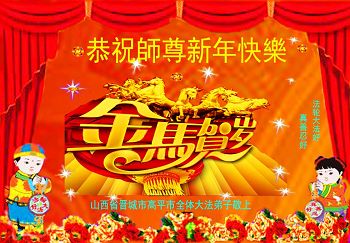 師尊您好!值此新年即將來臨之際,我們高平市大法弟子叩拜師尊,並真誠的道一聲:師尊您辛苦了!弟子們非常想念您!盼望與師尊早日團圓!我們唯有做好三件事,快救人、多救人才能回報師尊的浩大洪恩和慈悲苦度,圓滿隨師還。