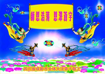 大法弟子歌曲「惟願師尊笑」、「跟著師父走」這兩首歌曲也代表著郫縣所有大法弟子的心願,弟子們一定要永遠跟著師父走,做好三件事。盼師尊早日回國與弟子們團聚!