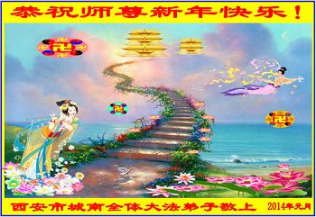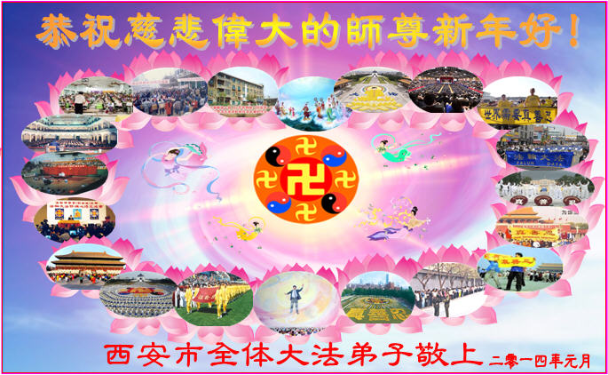在新的一年,西安大法弟子會形成一個整體,完成好師尊交付給弟子們的重託和使命,助師正法,勇猛精進!請師尊接受西安全體大法弟子的新年叩拜之禮!