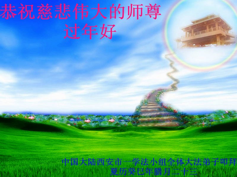 中國大陸陝西省西安一學法小組全體大法弟子恭祝慈悲偉大的師尊過年好!