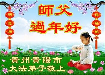 在中國新年到來之際,我們貴州省大法弟子向慈悲偉大的師尊致以崇高的敬意和最誠摯的問候:師尊過年好!師尊您辛苦了!在新的一年裏,我們將一如既往遵循師尊的教導,做好三件事,兌現我們的史前誓約,圓滿隨師還。