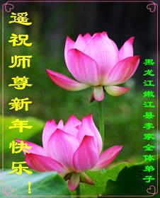 黑龍江省黑河市嫩江縣李家全體大法弟子遙祝慈悲偉大的師尊新年快樂!