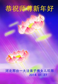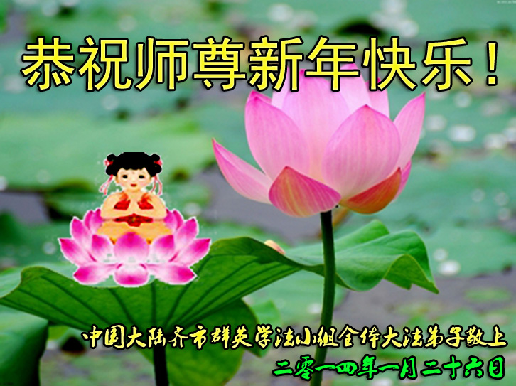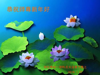 尊敬的師父好:新年到了,在此大法弟子由衷的感謝師父為救度眾生付出的巨大承受。我們努力在新的一年裏,要正念,不要人心,做好三件事,讓師父多一份欣慰,少一分操勞。師父啊!弟子們盼望您早日歸來!