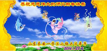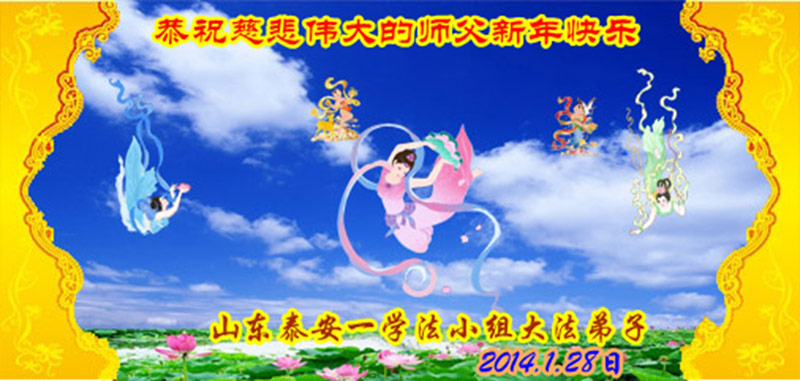 山東泰安一學法小組大法弟子恭祝慈悲偉大的師尊新年快樂!