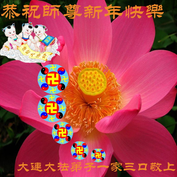 遼寧省大連大法弟子一家三口恭祝師尊新年快樂!