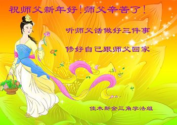 黑龍江省佳木斯金三角學法小組大法弟子祝師父新年快樂!