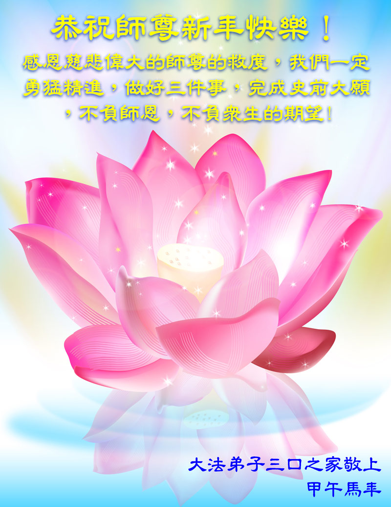 大法弟子三口之家恭祝師尊新年快樂!