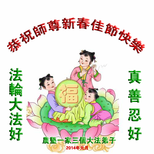 農墾一家三個大法弟子恭祝師尊新春佳節快樂!