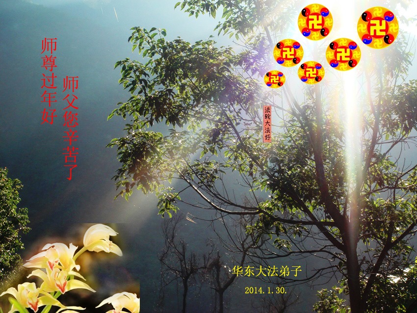 慈悲偉大的師尊新年好!謝謝師尊的慈悲苦度!弟子一定好好修,承擔起自己的歷史使命,不辜負這宇宙對自己的重託。弟子的一切都願同化大法,弟子的一切都願為師父和大法所用。
