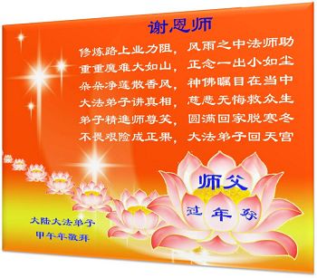 請師尊放心,弟子們在新的一年裏,用心做好三件事,助師正法,整體提高,共同精進,圓滿隨師還。