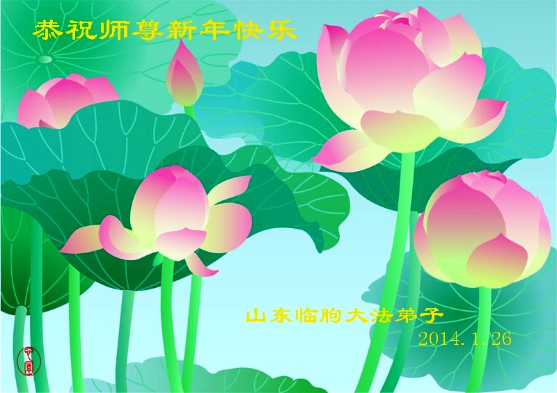 我們大陸的大法弟子和師尊雖然遠隔重洋,但是借助明慧網這個連接渠道,我們把對師尊的思念和崇敬傳達到大洋彼岸,讓全世界的人都知道,我們無論身在何處,我們對師尊的敬仰是一樣的!我是河北省唐山市曹妃甸區大法弟子,在甲午年新年將到之際,我和我的家人給師尊獻上我們最誠摯的問候和祝福!祝我們慈悲偉大的師尊新年快樂!