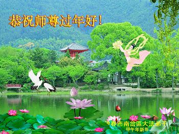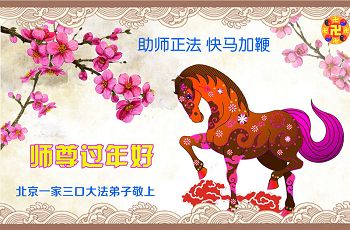 我們一家大法弟子共同遙祝慈悲偉大的師父新年快樂!無法用語言表達對師尊的無限感恩,唯有盡力做好師尊要求的「三件事」,救度更多的眾生,來謝師父的浩蕩佛恩!