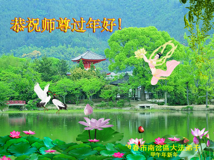 師尊新年快樂!弟子在新的一年裏要更加精進,靜心學好法,向內找,多救人,圓滿隨師還。