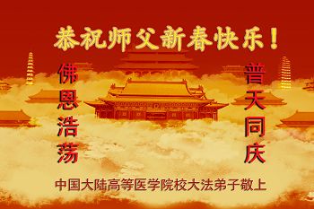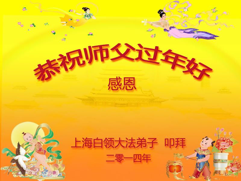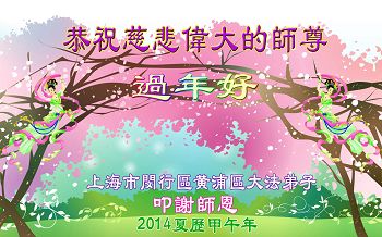 我們是上海大法弟子,在新的一年裏我們會加緊做好三件事,以報師恩!謝謝師父的慈悲救度!祝師父過年好!
