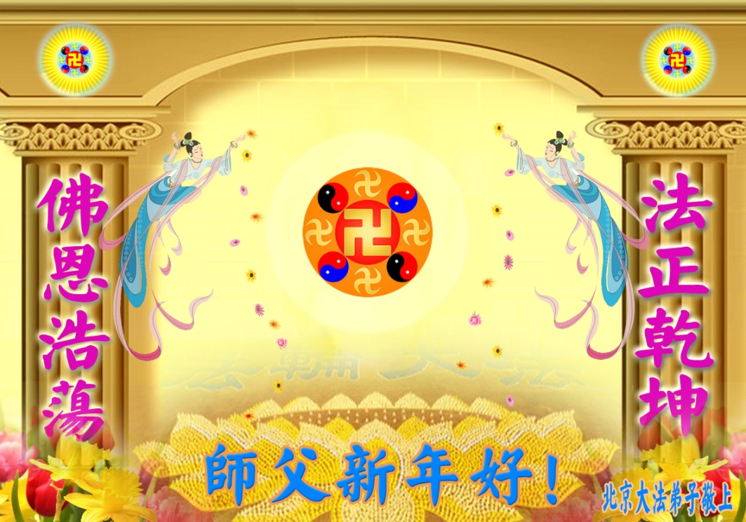 在傳統的新年即將到來之際,我們給慈悲偉大的師尊拜年:師尊過年好!在新的一年裏,我們一定要更加精進,做好三件事,精心學好法,多學法,遇事向內找,多發正念,多救人,走好每一步,不忘肩負使命。請師尊放心。