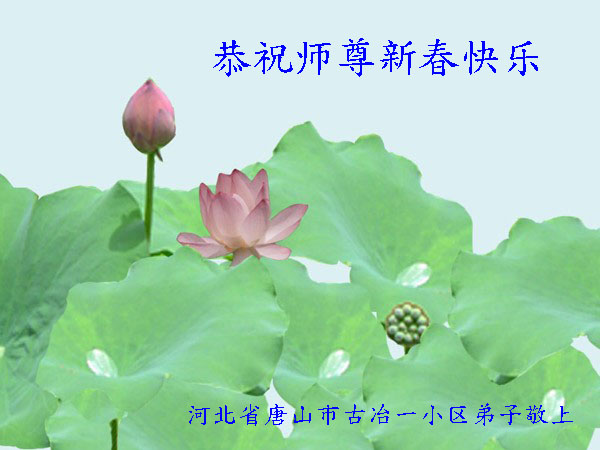祝師尊新年快樂!轉眼又是新的一年,在這裏我們唐山大法弟子祝福師尊新年快樂!請師尊放心。我們一定會跟上正法進程,救度眾生!圓滿隨師還!