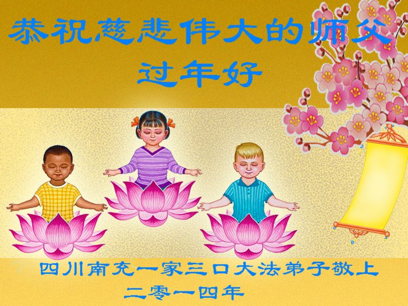 四川南充一家三口大法弟子恭祝師父過年好!