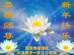 江蘇省南京市秦淮區大法弟子一家三口恭祝師尊新年好!