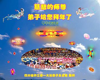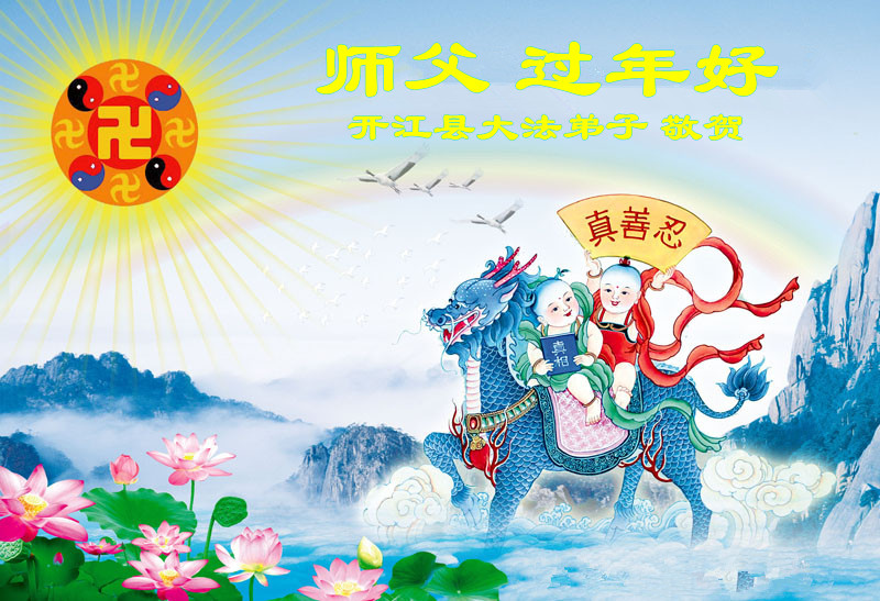 四川省達州市開江縣一大法弟子及全家給慈悲的師尊拜年了!