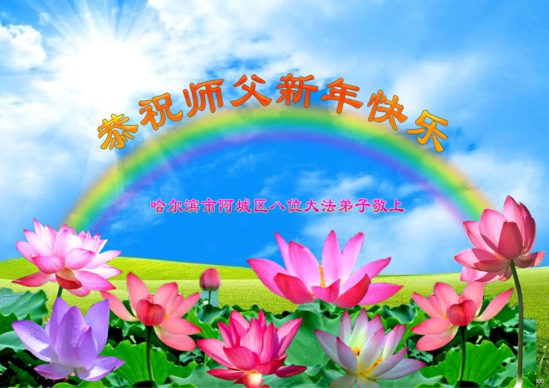 黑龍江省哈爾濱市阿城市區八位大法弟子恭祝師父新年快樂!