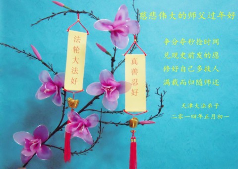 感謝師尊十多年來的慈悲呵護,在中國新年來臨之際,我代表丈夫(同修)祝師尊新年快樂!