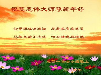 四川省成都西幹大法弟子學法小組恭祝偉大慈悲的師尊新年快樂!