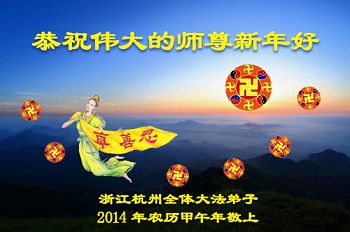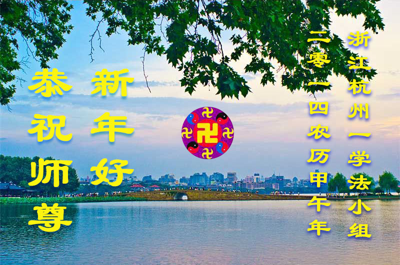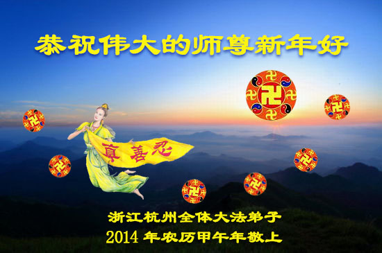 在2014年即將到來的時刻,我們杭州的大法弟子更加想念偉大的師尊,師尊您辛苦了!用盡人間任何語言也無法表達弟子對您的感恩之心。我們唯有聽您的話,實修自己,多救人,實現自己的偉大使命,讓師父放心。最後祝慈悲偉大的師尊新年快樂!