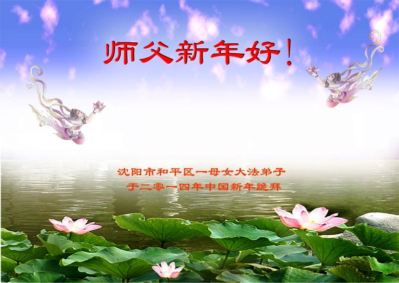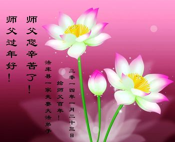 想念師父:盛開梅蓮傲迎春,新春佳節又思親,淚水漣漣濕衣襟,大法弟子拜師尊。感恩師父:新春甲午年到,馬到成功好預兆,跟上這正法洪勢,最後時刻把恩報,風雨彩虹梅蓮俏,助師正法得榮耀,一定做好三件事,讓師欣慰慈悲笑。學法小組全體大法弟子叩拜!