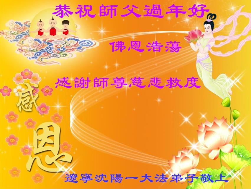 雙膝跪地給師尊叩頭恭祝師尊新年快樂!在此僅以「得法行」之真言獻給師尊、略表心意。