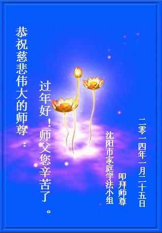 我們學法小組全體大法弟子面向西方隔洋跪拜:恭祝慈悲偉大的師尊新年好、新年快樂!