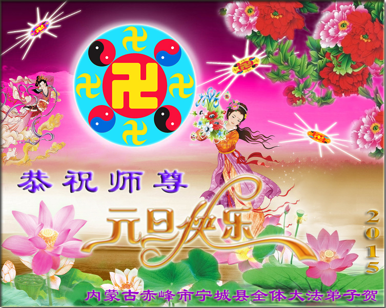 二零一五新年來臨之際內蒙古滿洲裏市姐妹倆大法弟子向慈悲偉大的師尊問好,恭祝師尊新年快樂!