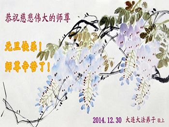 師父您好!恩師辛苦了!轉眼二零一四年要過去了,一年來深感時間的匆忙。正法修煉接近尾聲,也體會到修煉中在關鍵的事情上才驗證大法弟子對師父對師父的大法的正信真信!作為師父的弟子,在真修實踐中只有更堅定堅信的走好最後的路,好好聽師父的話,跟上師父的正法要求,圓滿隨師還!感謝恩師的救度!