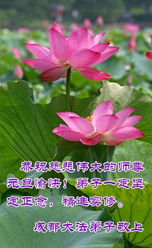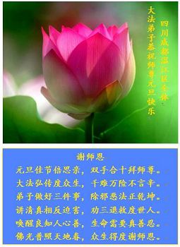 成都市郫縣一大法弟子全家恭祝慈悲偉大的師尊元旦節快樂!