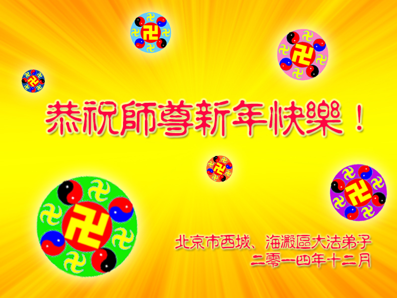 在2015年元旦來臨即將之際,北京通州區一5人學法小組全體大法弟子恭祝師尊元旦快樂!
