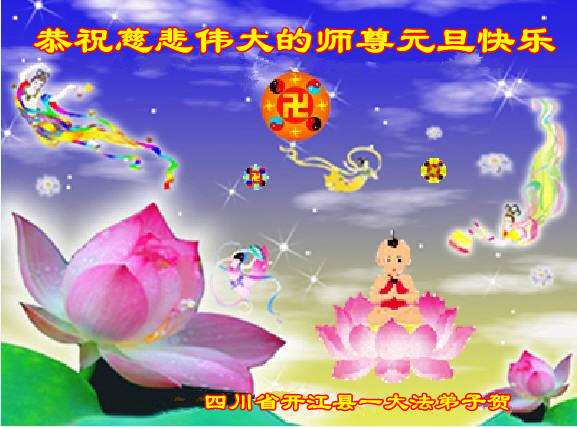 四川綿陽全體大法弟子元旦叩拜感恩師父慈悲苦度!