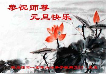 四川綿陽一老年大法弟子敬拜恭祝師尊元旦快樂!