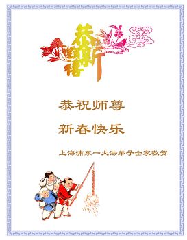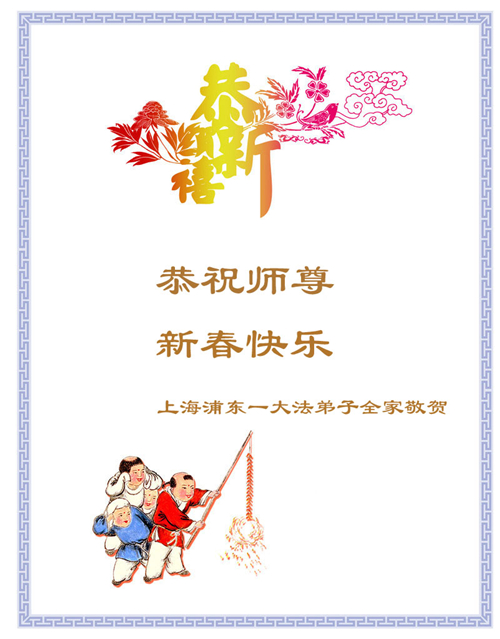 我有幸代表上海松江區大法弟子向慈悲偉大的師父拜年,我們一定要精進起來,做好三件事,請師父放心。我個人也要改變長期學不了法的狀態,一定要趕上精進的大法弟子,感謝師父慈悲苦度!
