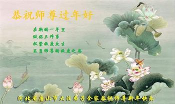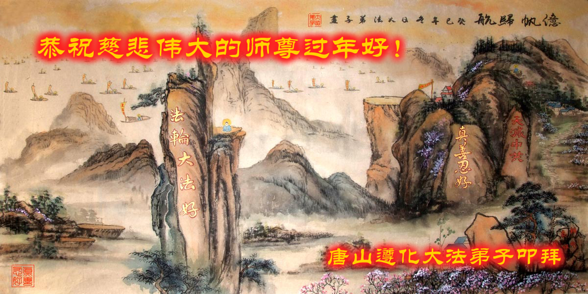 唐山市五區30多位大法弟子和流離失所的大法弟子再次恭祝慈悲偉大的師尊新年快樂!