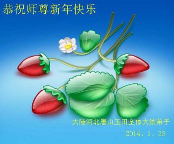 我們是河北唐山豐潤區的一家庭學法小組,值此新年之際我們全體弟子恭賀師尊新年快樂!在以後的日子裏我們努力做好三件事,不負師尊的慈悲苦度,早日圓滿隨師還。