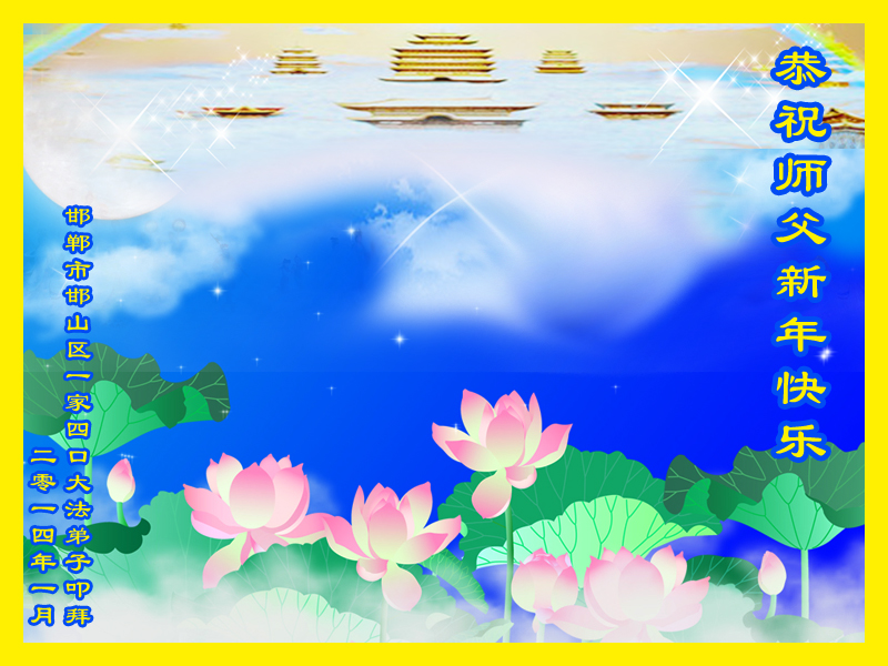 河北省邯鄲市邯山區新老大法弟子恭祝慈悲偉大的師尊新年快樂!