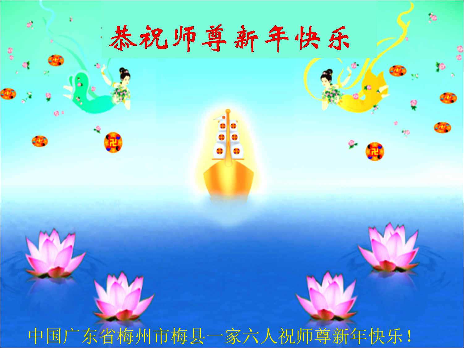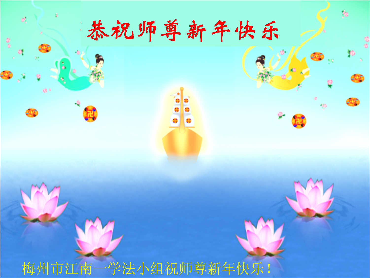 廣東省梅州市江南一學法小組大法弟子祝師尊新年快樂!
