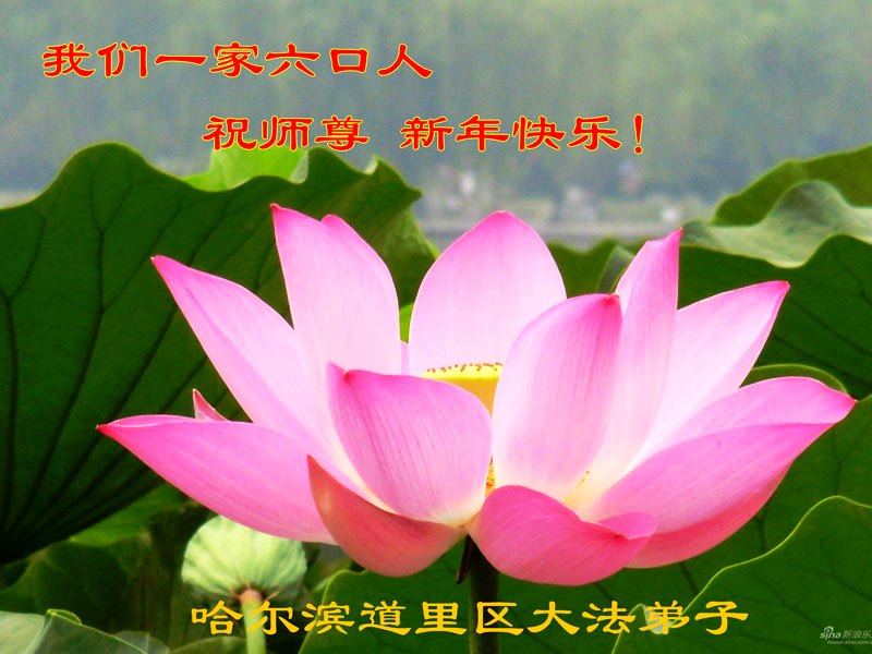 黑龍江省哈爾濱道裏區大法弟子一家六口祝師父新年快樂!