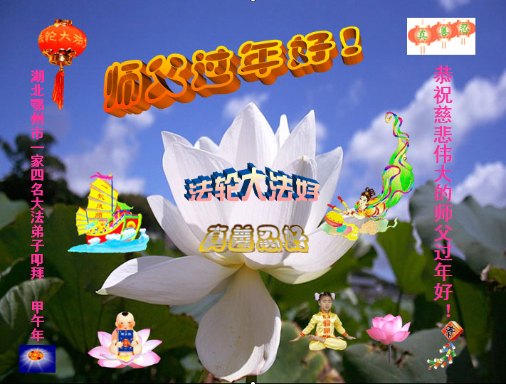 湖北省鄂州市一家四名大法弟子給師父拜年!