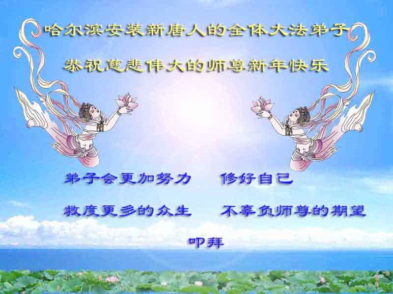 黑龍江省哈爾濱安裝新唐人的全體大法弟子向慈悲偉大的師尊恭祝新年快樂!