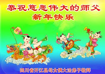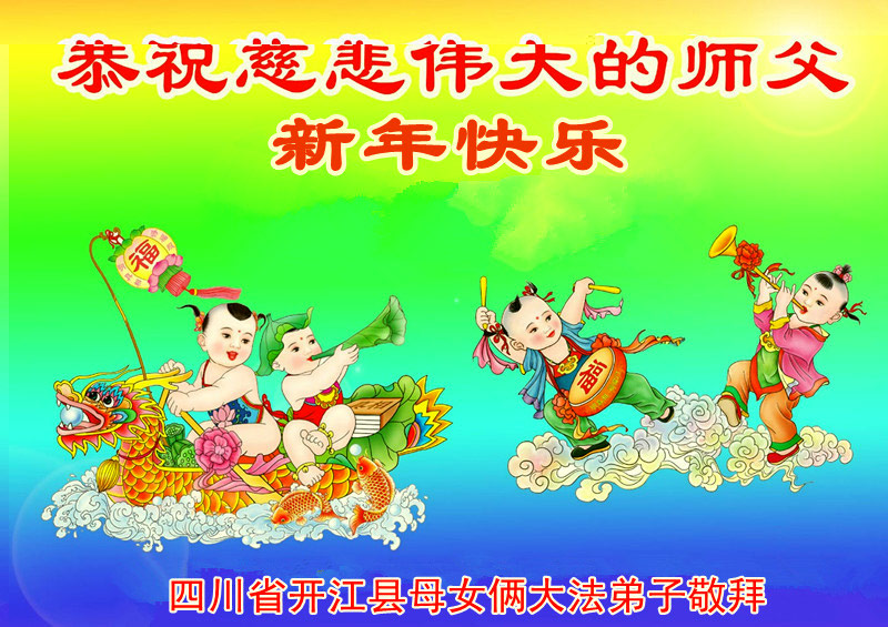 四川省達州市開江縣母女倆大法弟子敬祝師尊過年好!