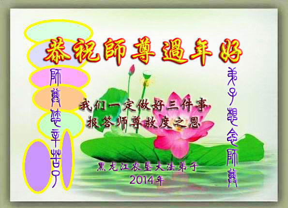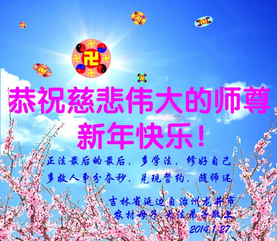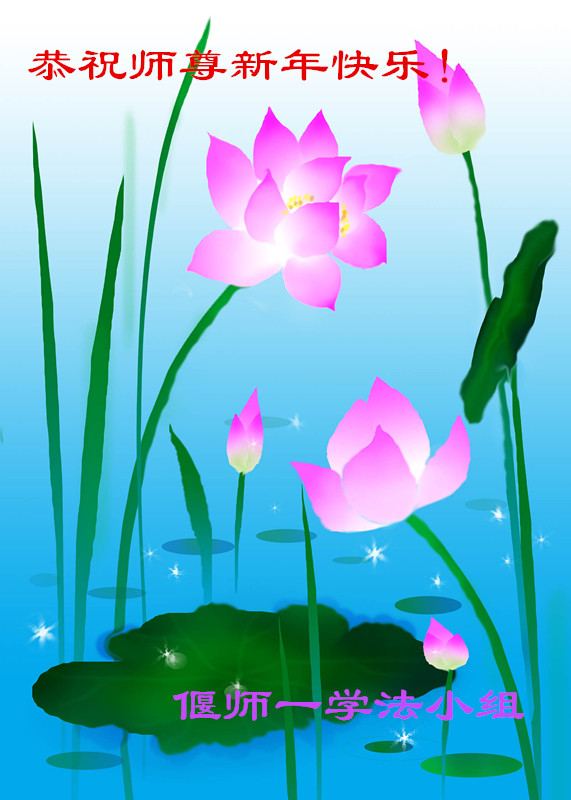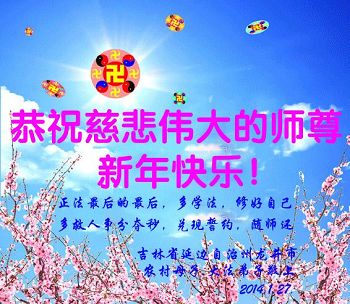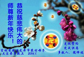 感恩慈悲偉大的師父救度,我們全家人在新的一年裏一定會精進實修,讓師父少些操勞,多些欣慰,我本人是一名青年大法弟子,從小在父親的帶領下走入大法中,從得法到今年已經一十九年了,大法陪我走過了青春歲月,大法的法理已經深深的烙印在了我的心裏,無論修煉的路上如何磕磕絆絆,我都會堅定的修煉下去,請師父放心。