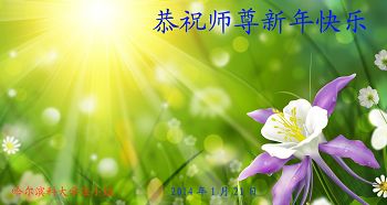 在新年即將到來之際,我們全體大法弟子恭祝師尊新年快樂、萬事如意、正法早成!在新的一年裏,我們牢記師尊的教導,比學比修,在一思一念、一言一行中做到實修,在法上修,遇事向內找,時時事事用法來衡量,不斷修去自己的人心和執著,修煉如初,勇猛精進,紮紮實實做好三件事,以此報答師恩!