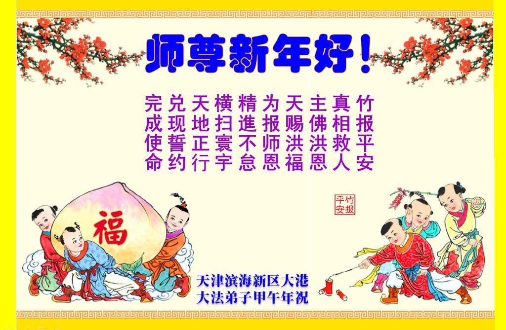 天津濱海新區大港大法弟子向師父拜年!師父新年好!